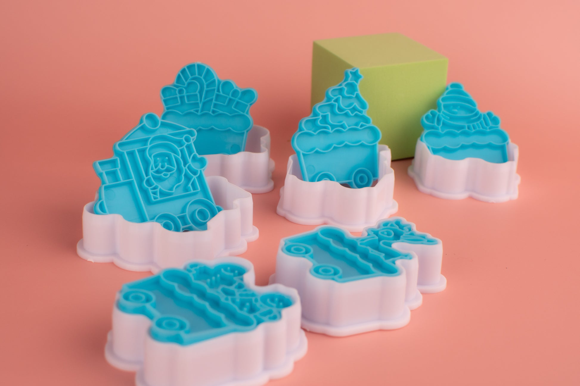 - Temática Navideña: Incluye 6 cortadores con formas navideñas de 5 cm