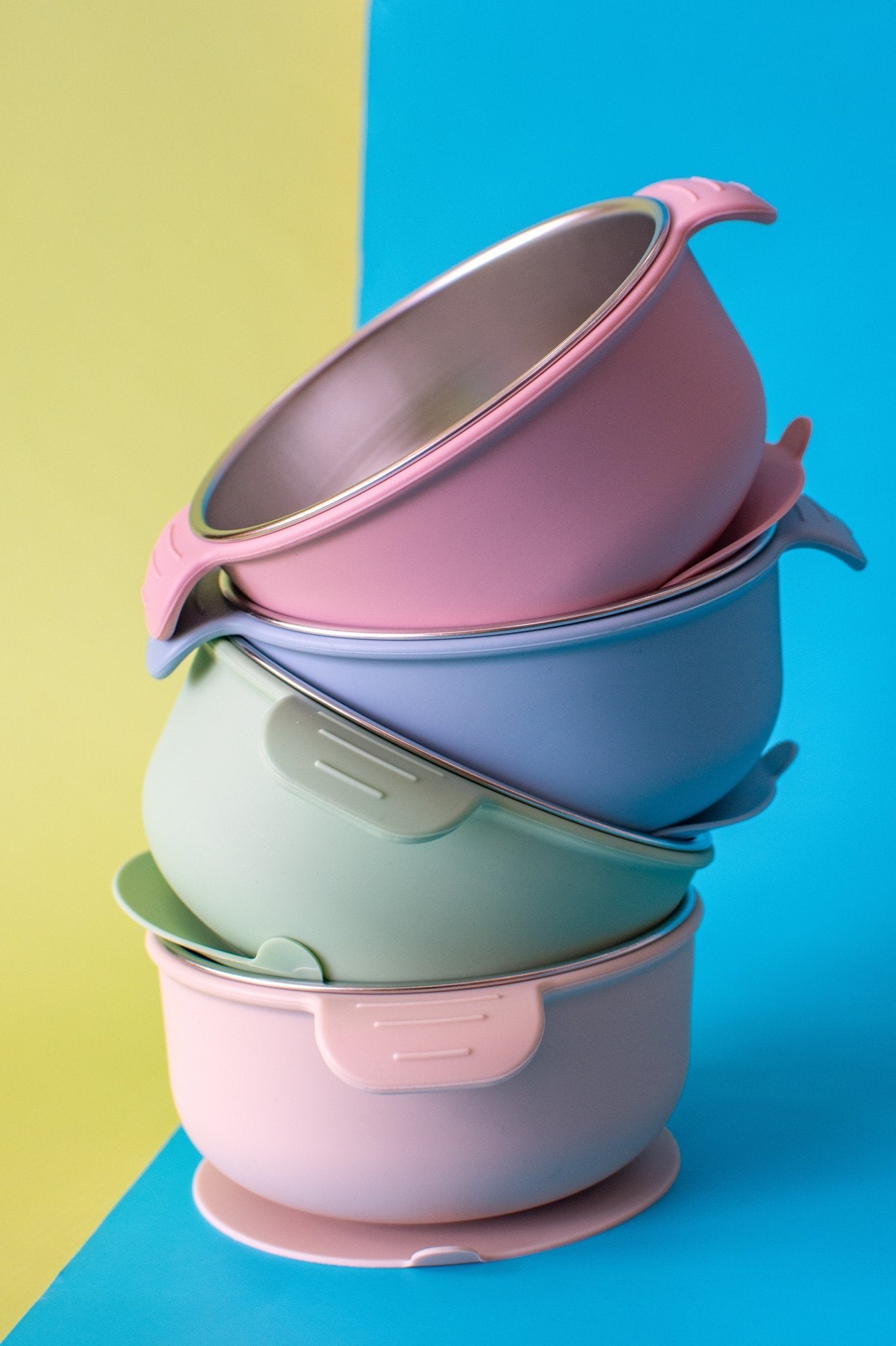 Juego de platos de acero inoxidable con ventosa🥣🍽️ Bundle “Comidas Sin Caídas” – Plato y Cuenco de Acero Inoxidable