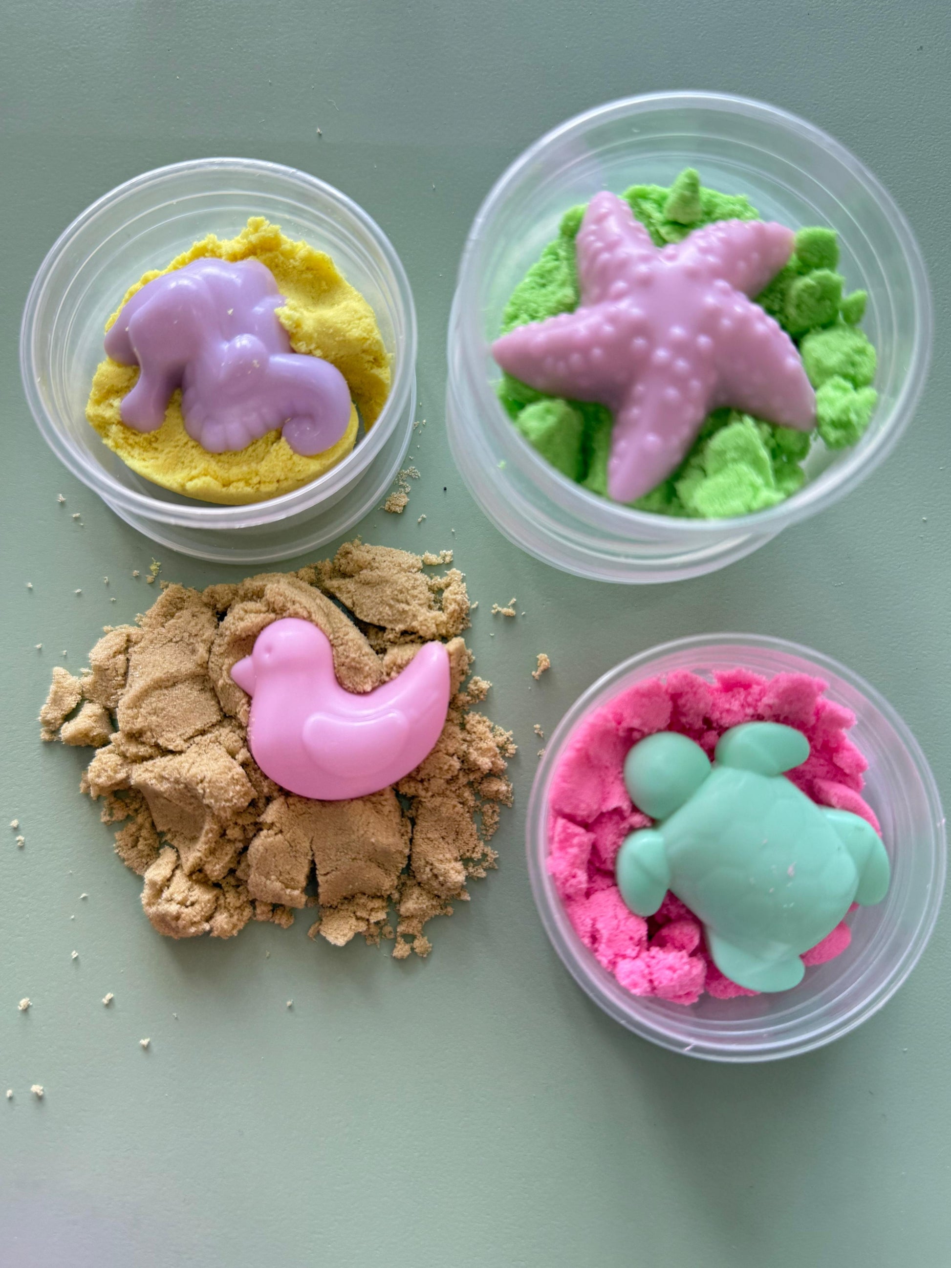 🌈 4 arenas kinéticas en colores vibrantes, perfectas para el juego libre y el desarrollo táctil.