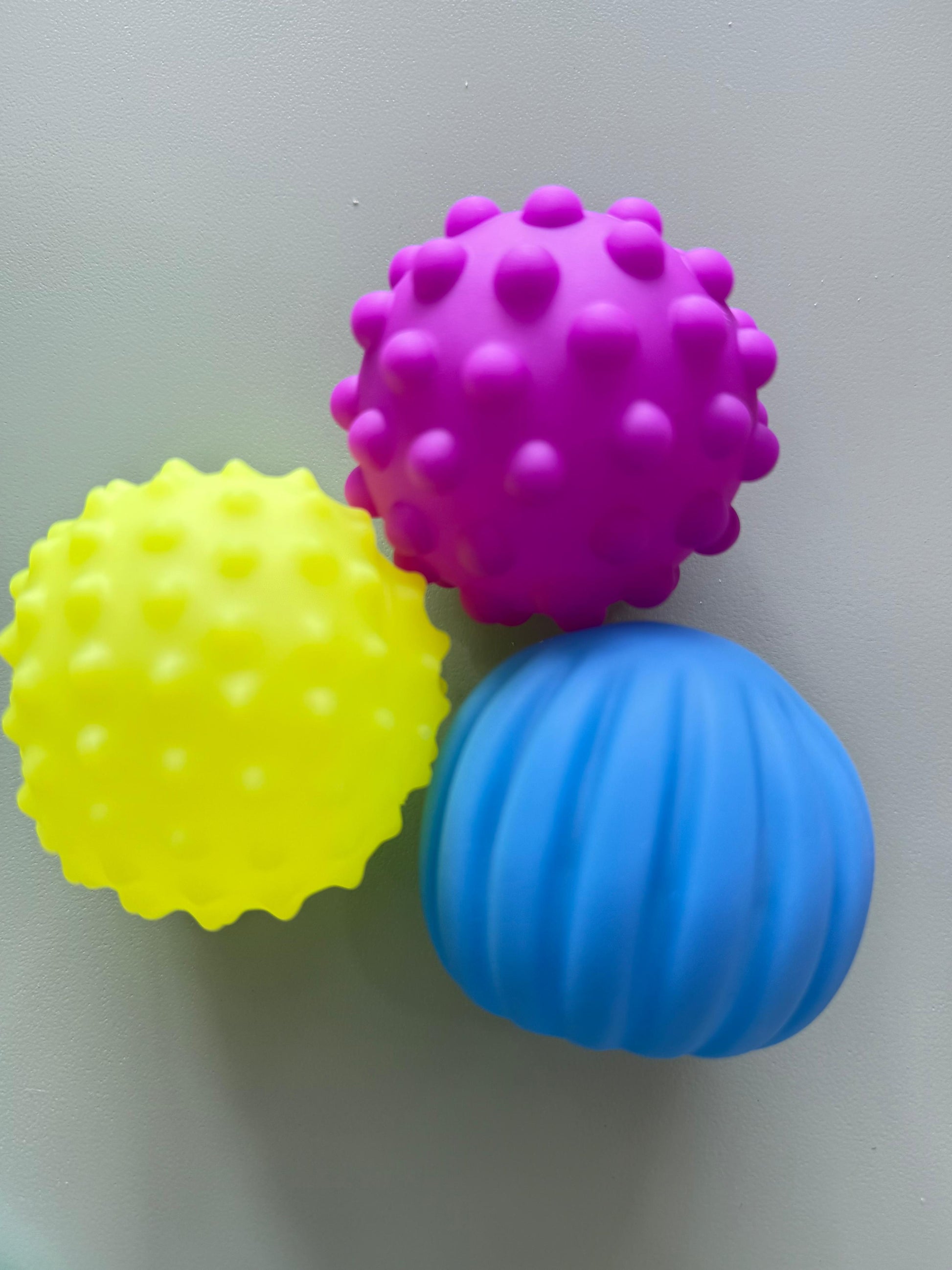 ⚽ 3 pelotas sensoriales de distintos relieves para manos curiosas.