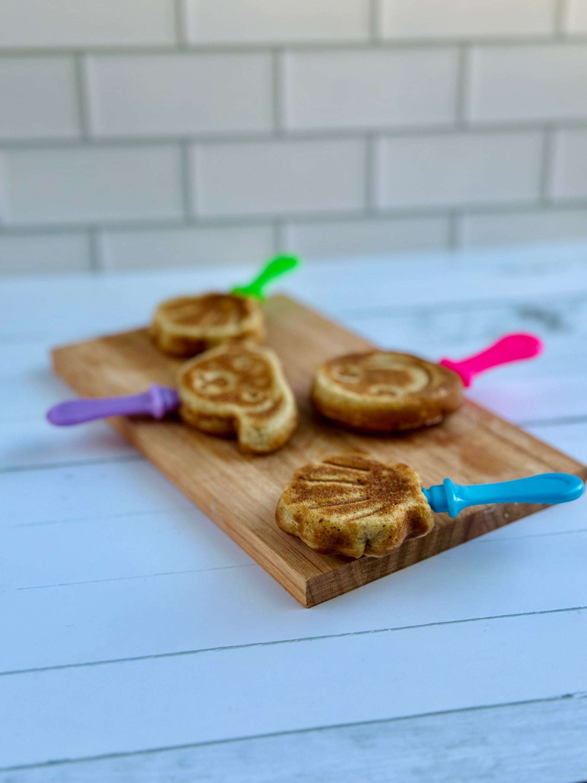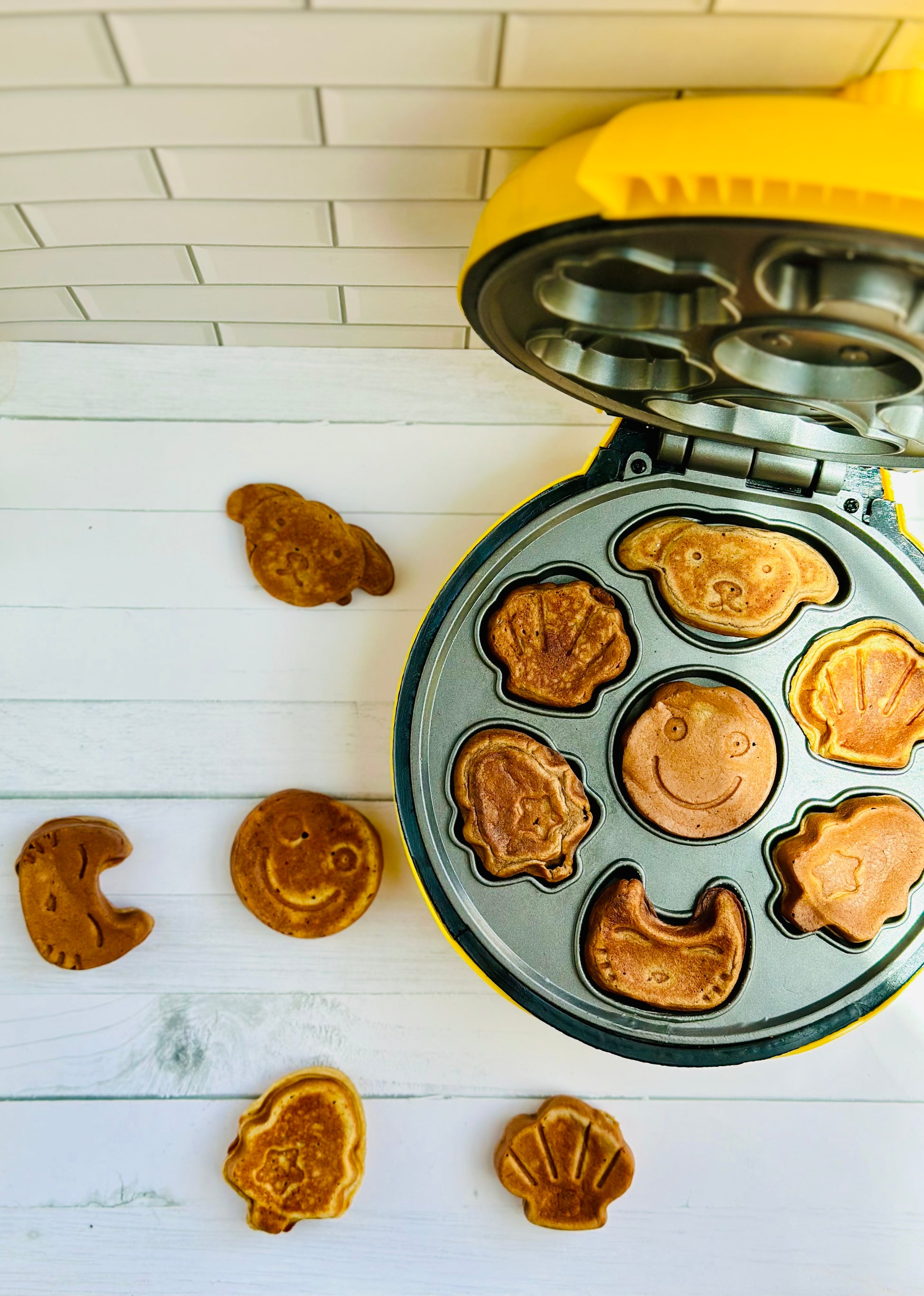 ● Hace 7 mini hotcakes con diseños atractivos y divertidos para los niños.