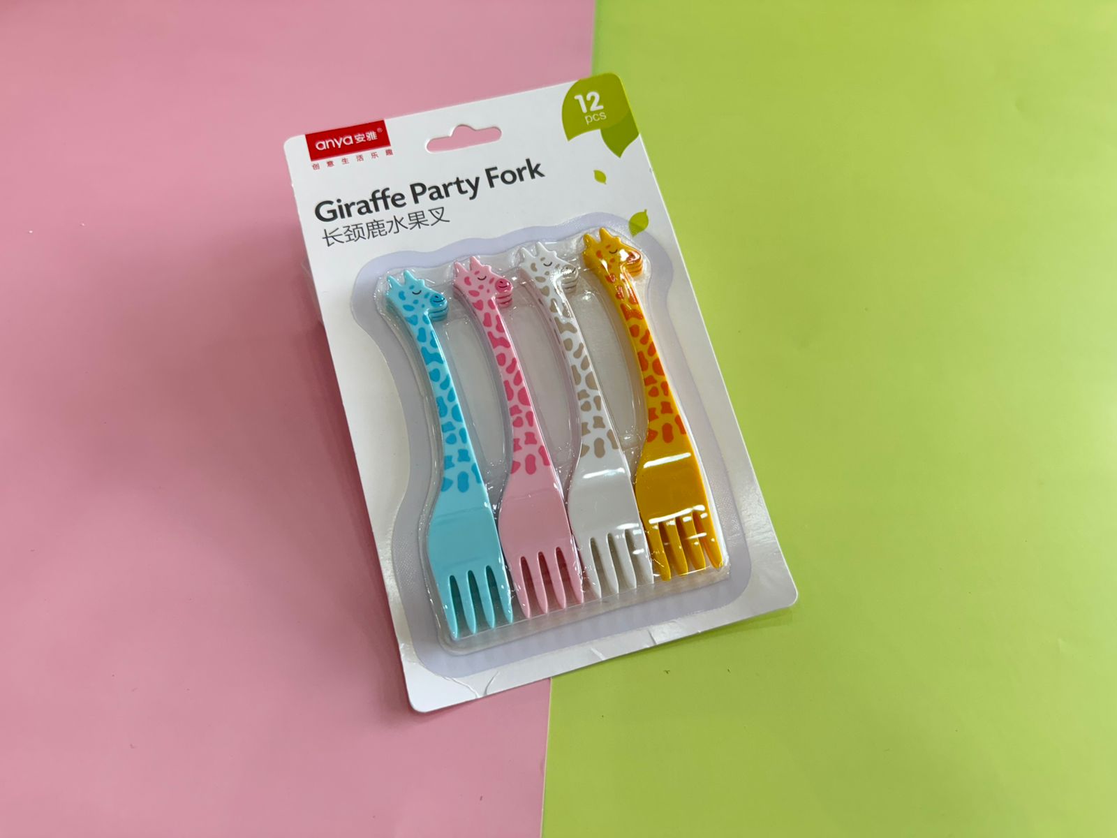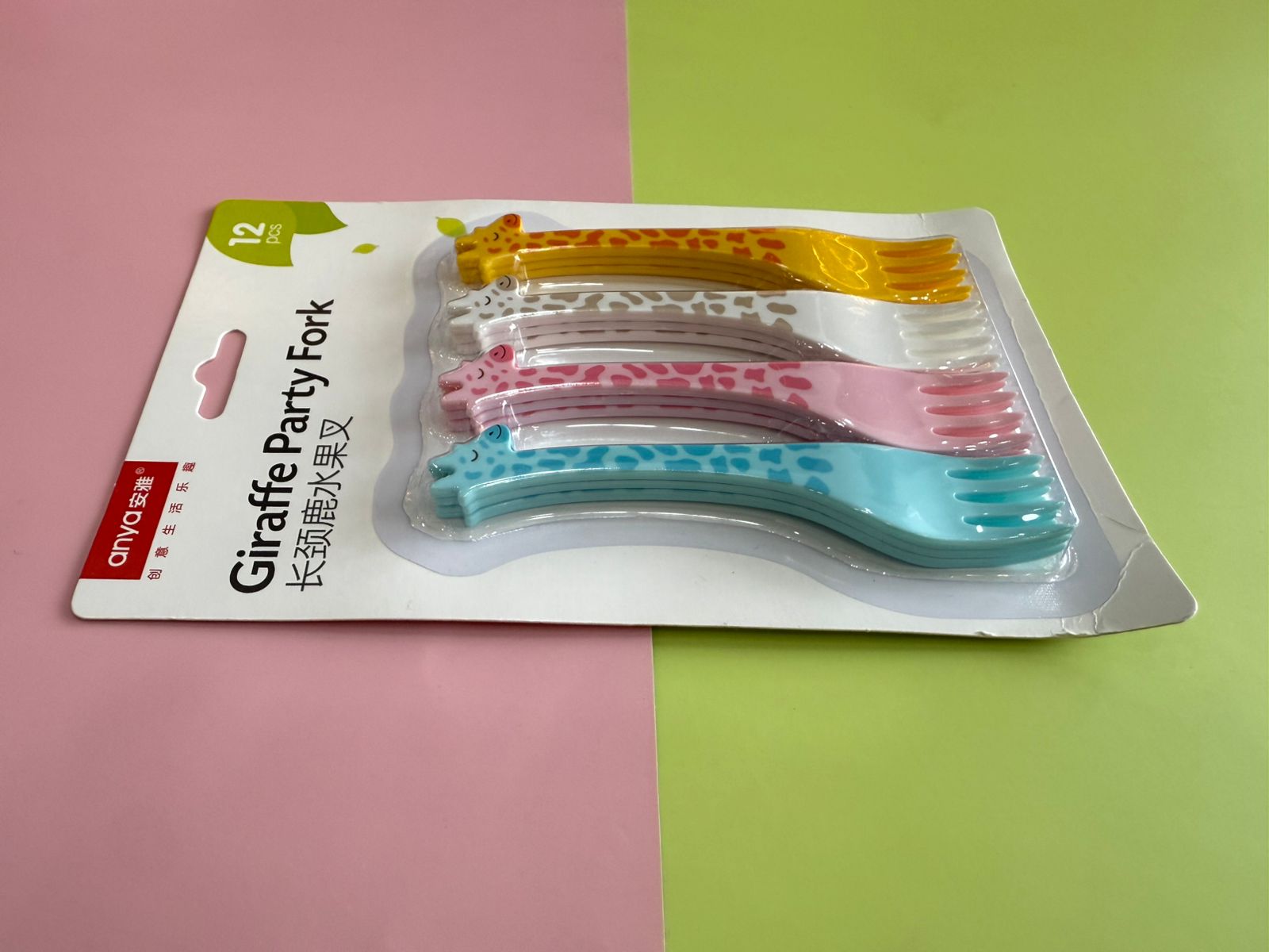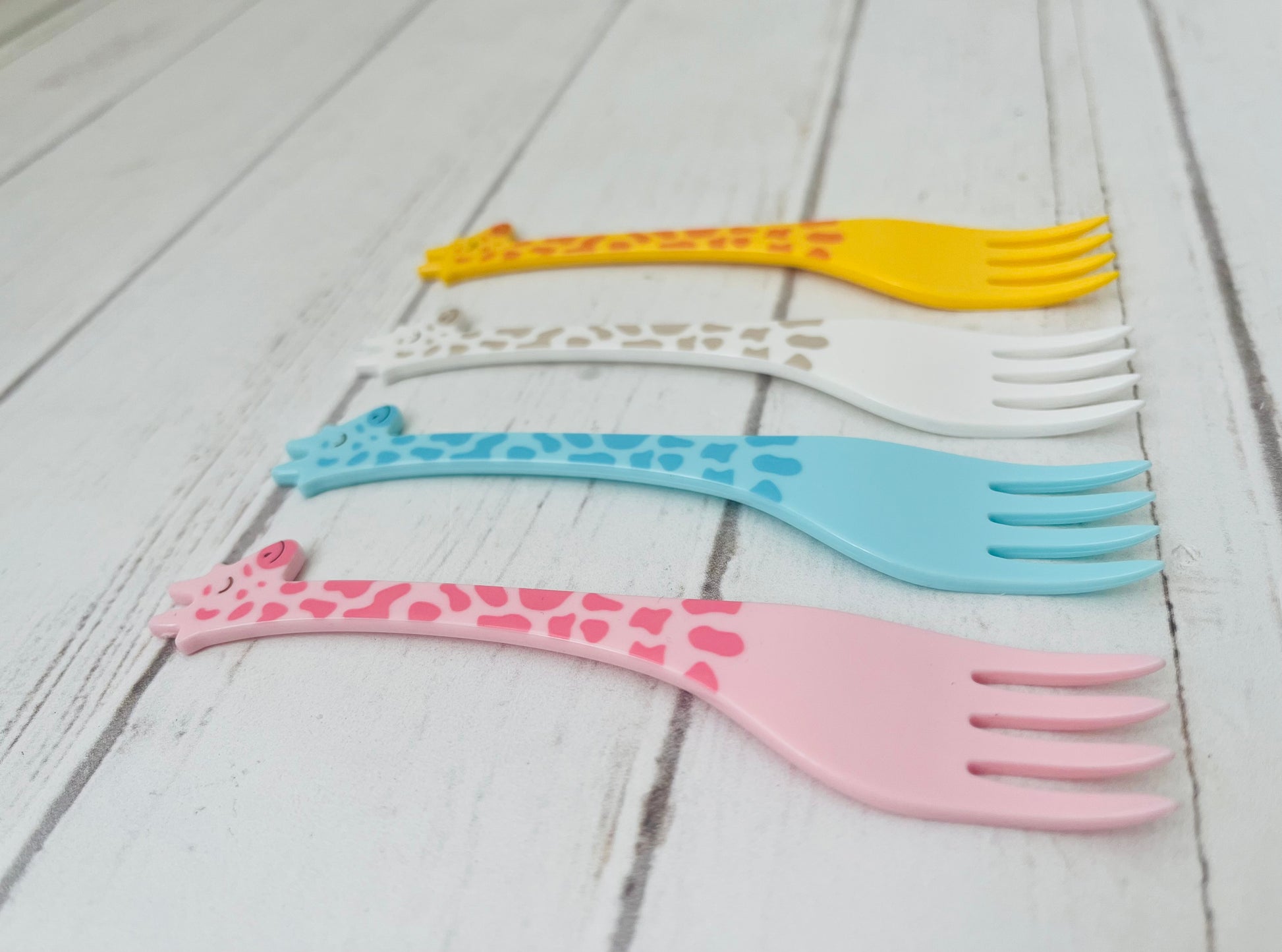 Juego de 4 tenedores en forma de jirafa, ideales para que los pequeños coman fruta, verduras o pequeños bocados.