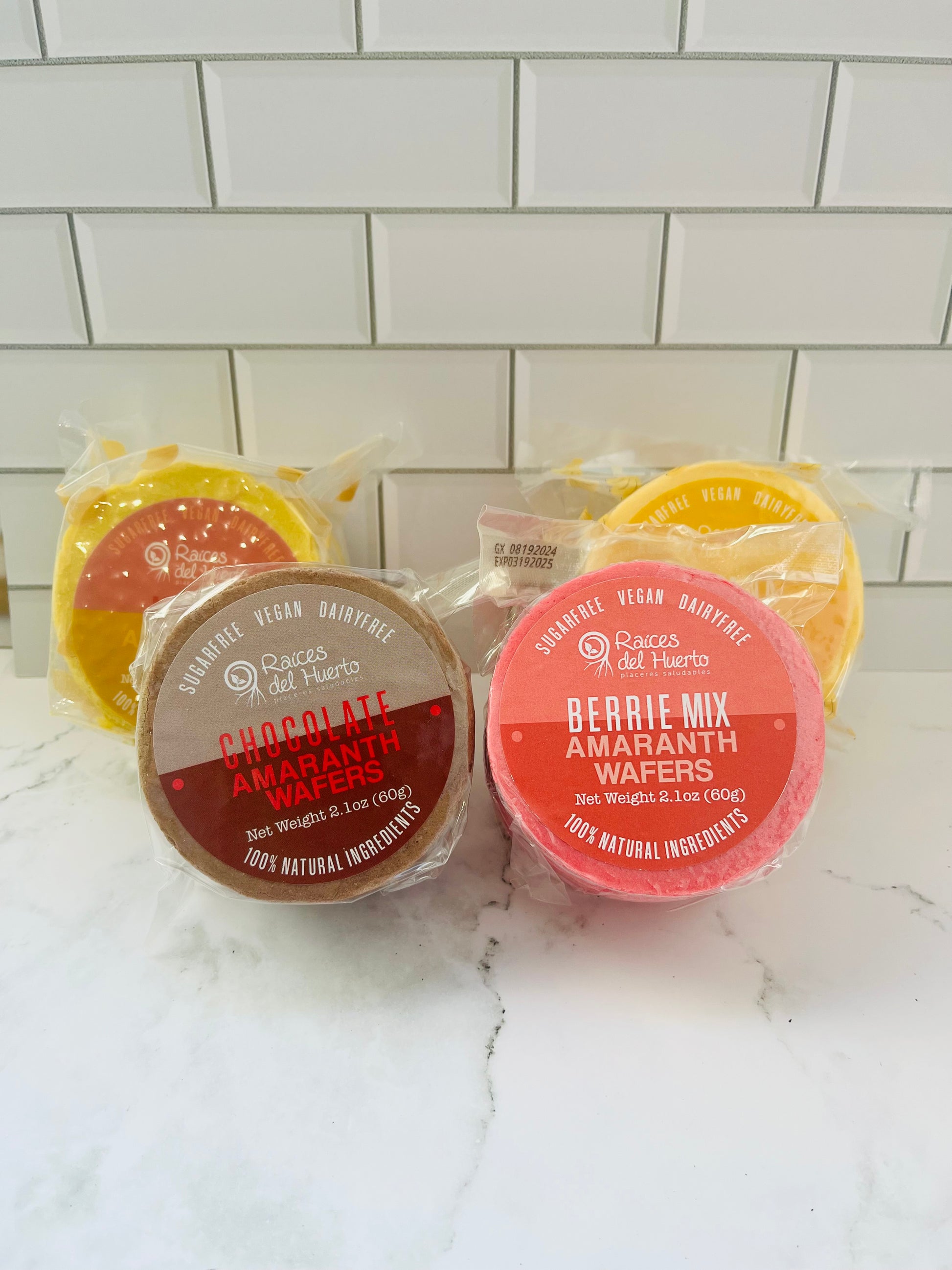 ¡Un snack saludable y delicioso para los más pequeños de la casa! Estas obleas están elaboradas con una mezcla de harina de amaranto, harina de avena y polvo de frutos rojos, plátano, cacao o mango. Creando un bocado lleno de nutrientes, sabor y energía. Endulzadas de manera natural con stevia, son una opción perfecta para disfrutar.