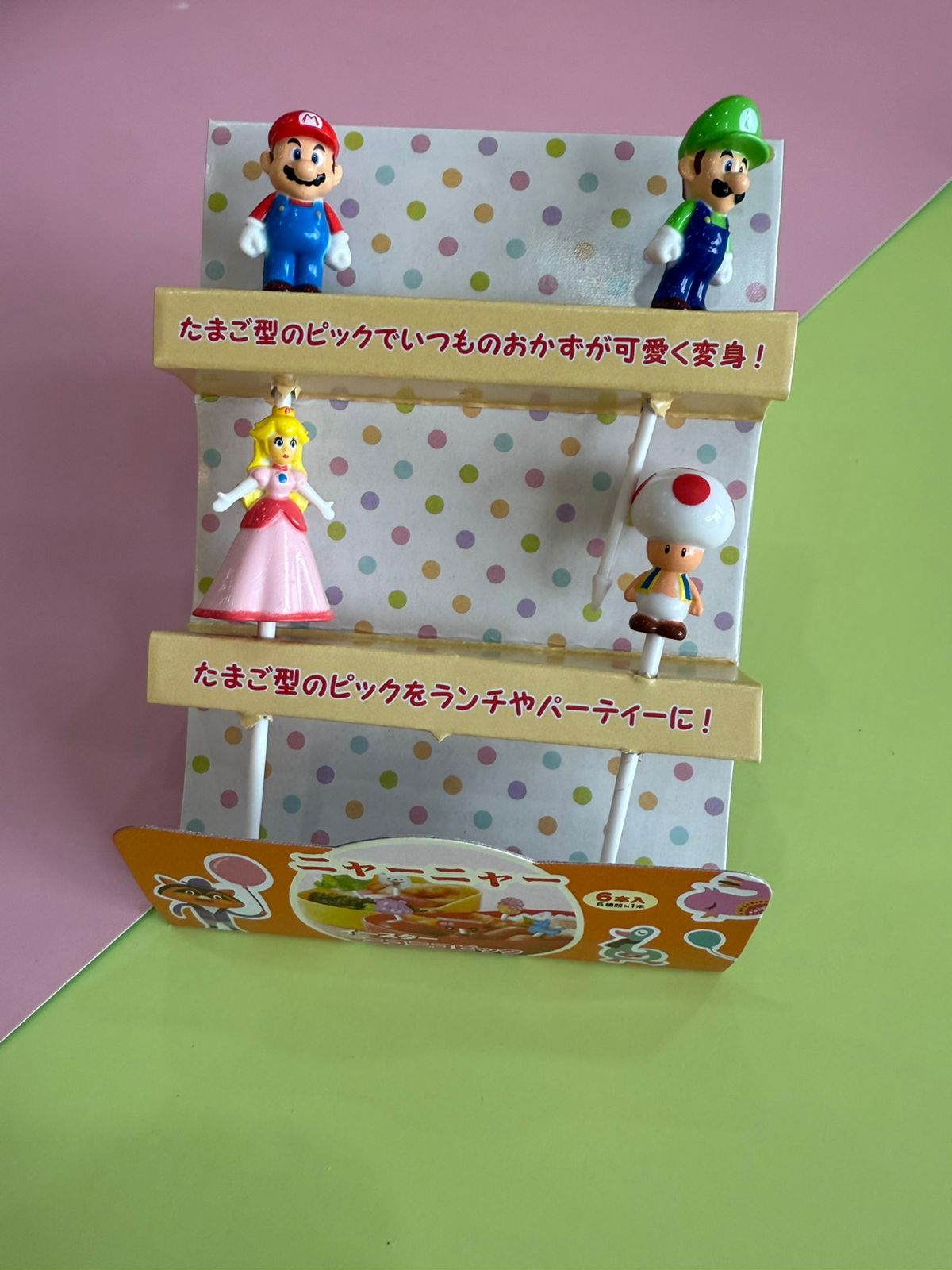 Juego de 4 picks de Mario Bros, ideal para que los pequeños coman fruta, verduras o pequeños bocaditos