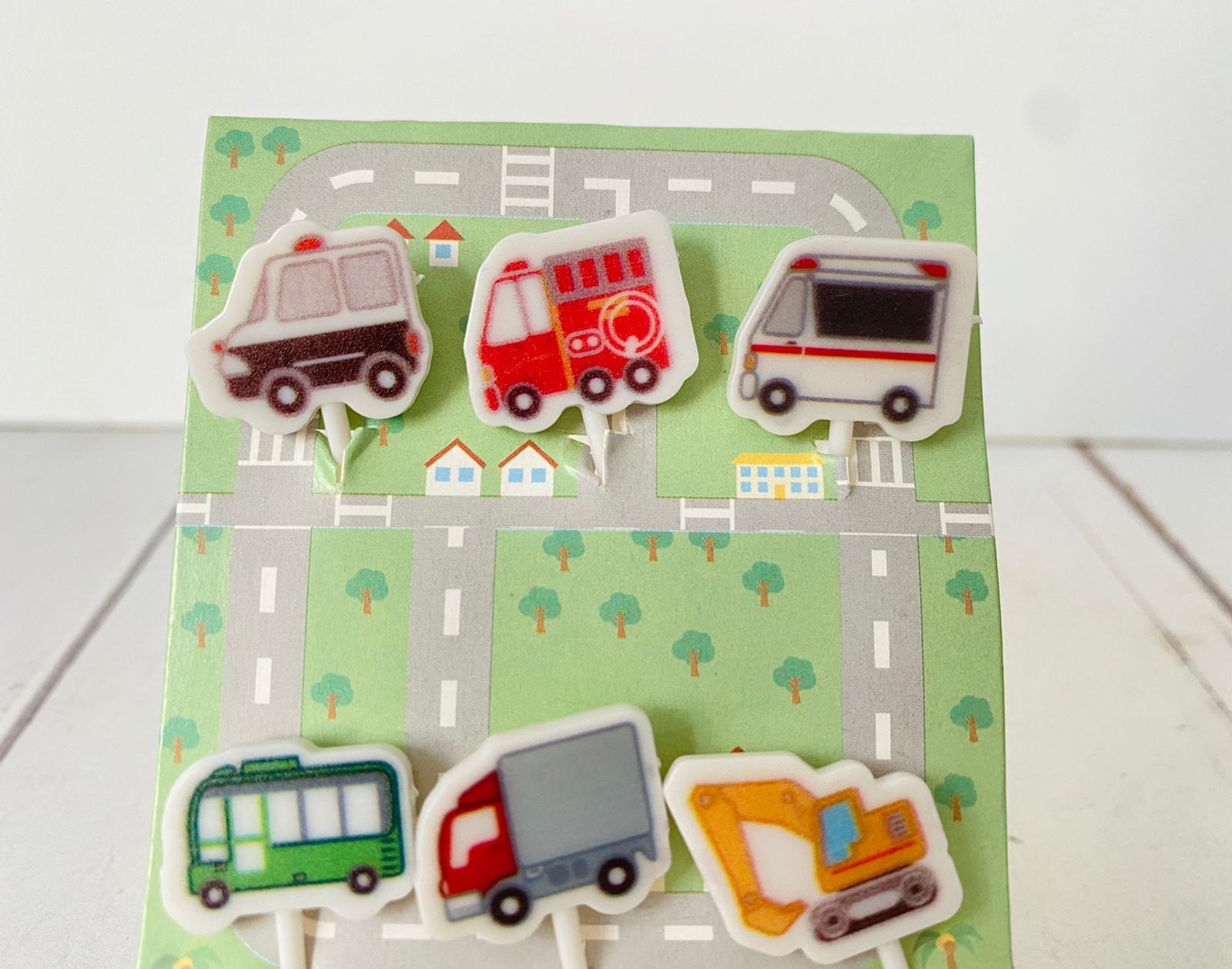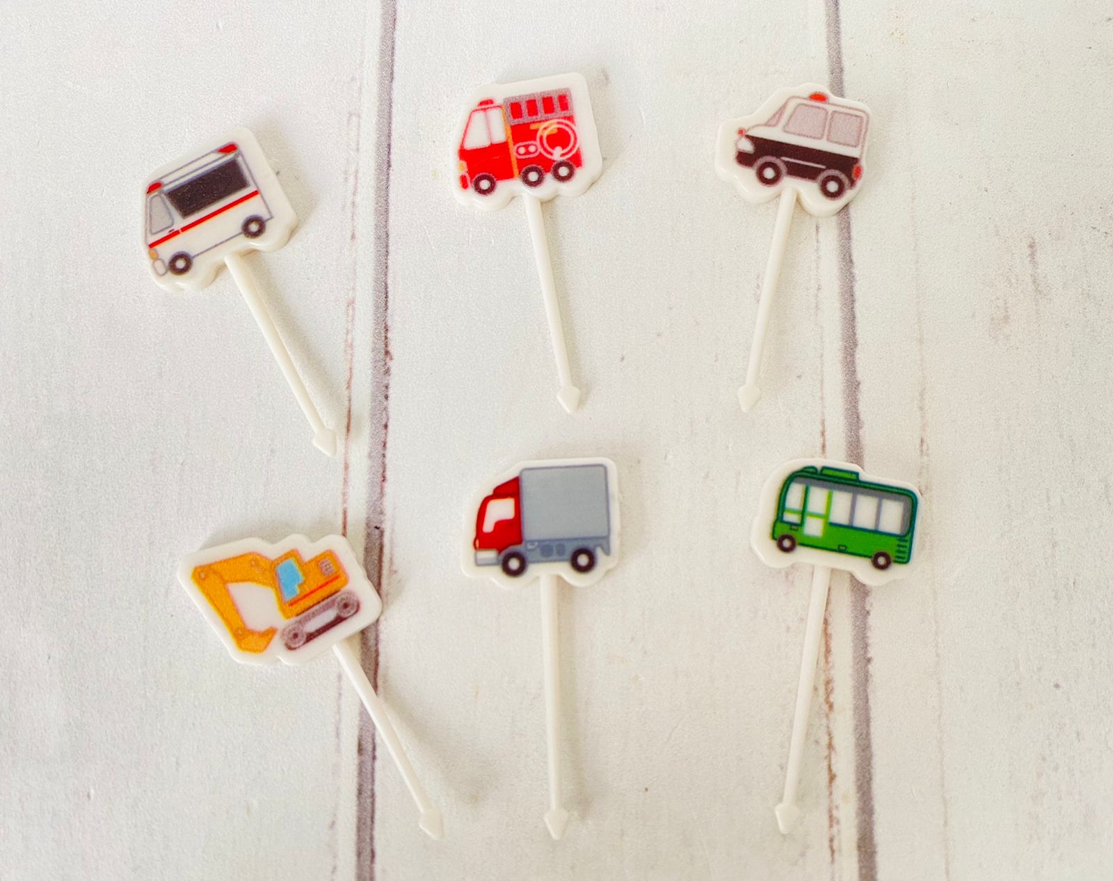 Juego de 6 picks de transportes, ideal para que los pequeños coman fruta, verduras o pequeños bocaditos