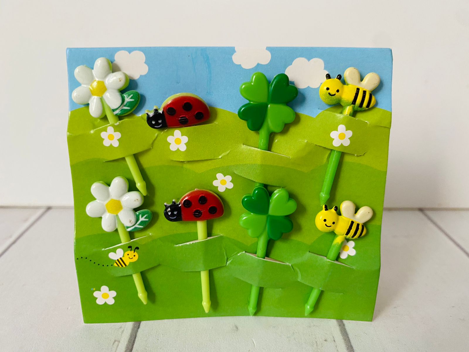 Juego de 8 picks con tematica de primavera, ideal para que los peques coman fruta, verduras o pequeños bocaditos