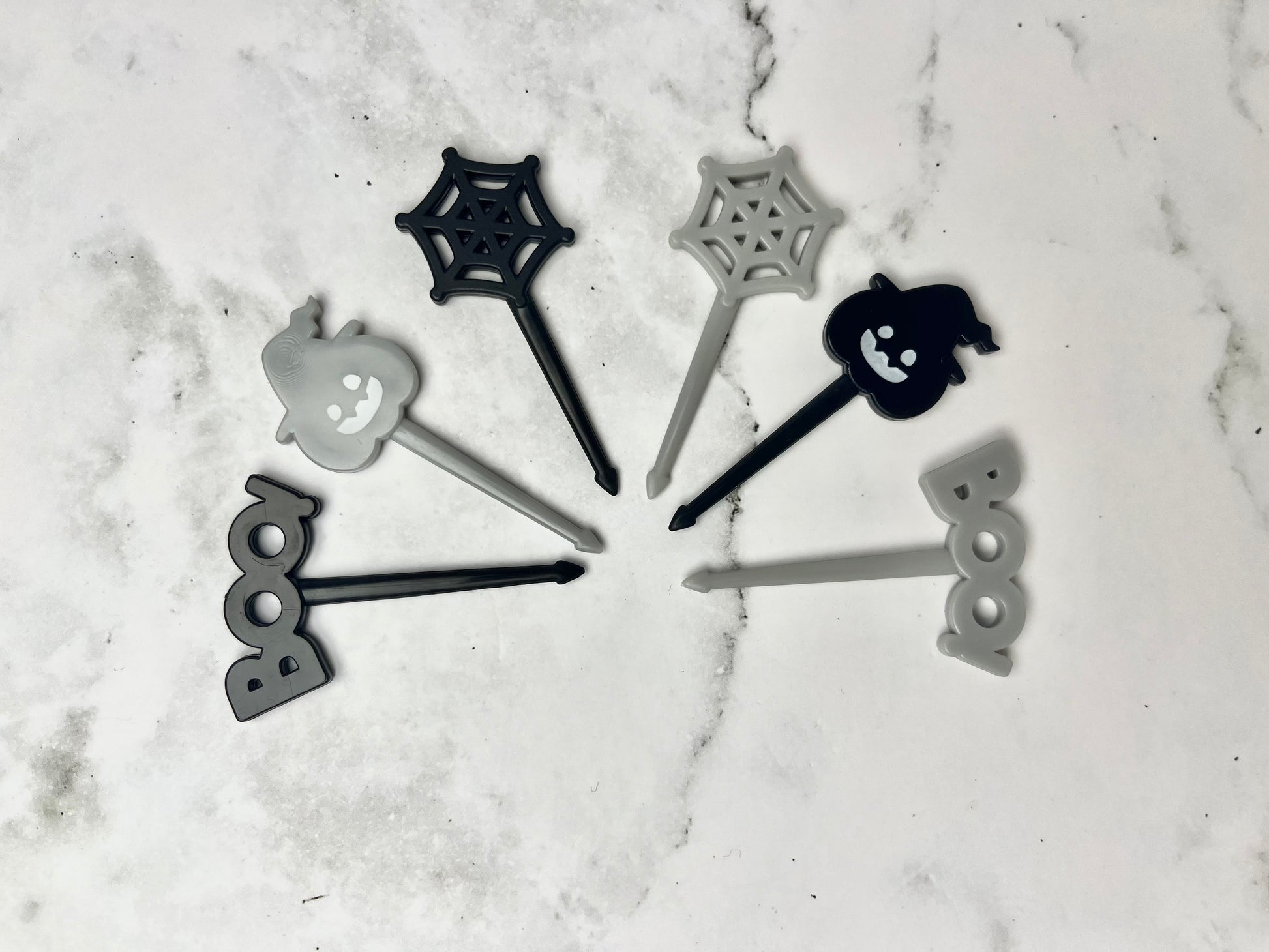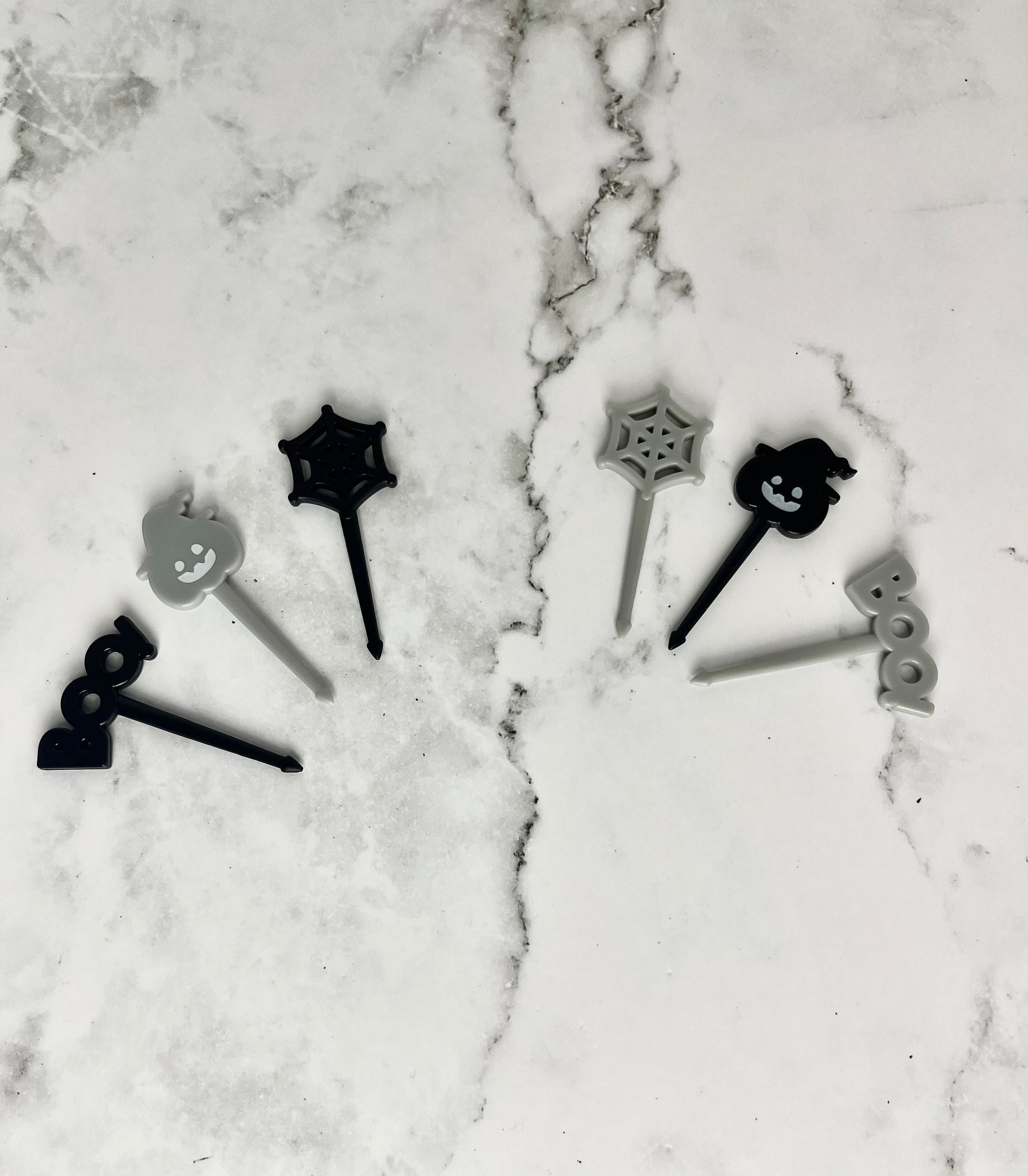 - Figuras divertidas de halloween: 2 telarañas, 2 BOO!, 2 calabazas.