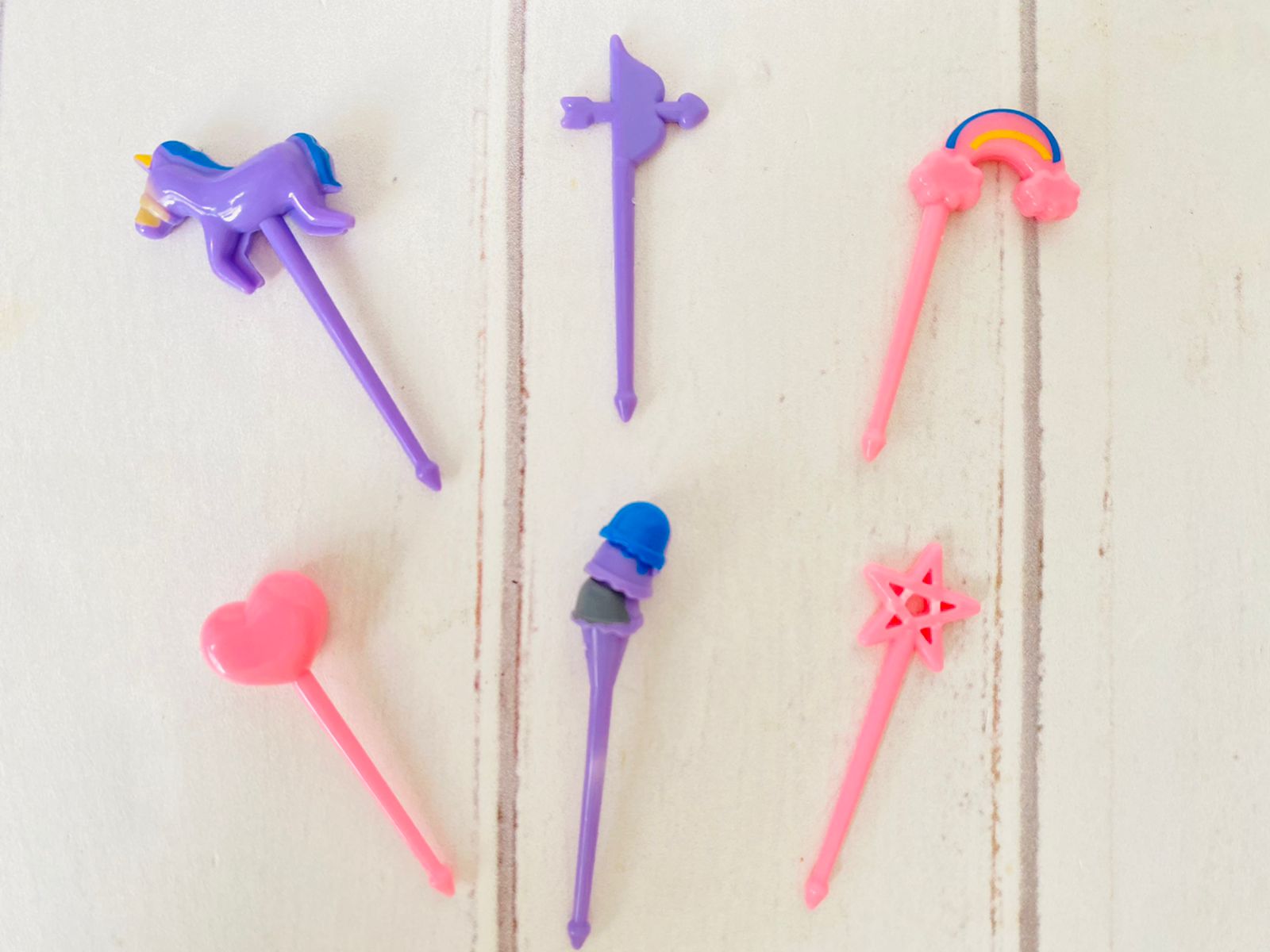 Juego de 6 picks unicornio y mas, ideal para que los peques coman fruta, verduras o pequeños bocaditos