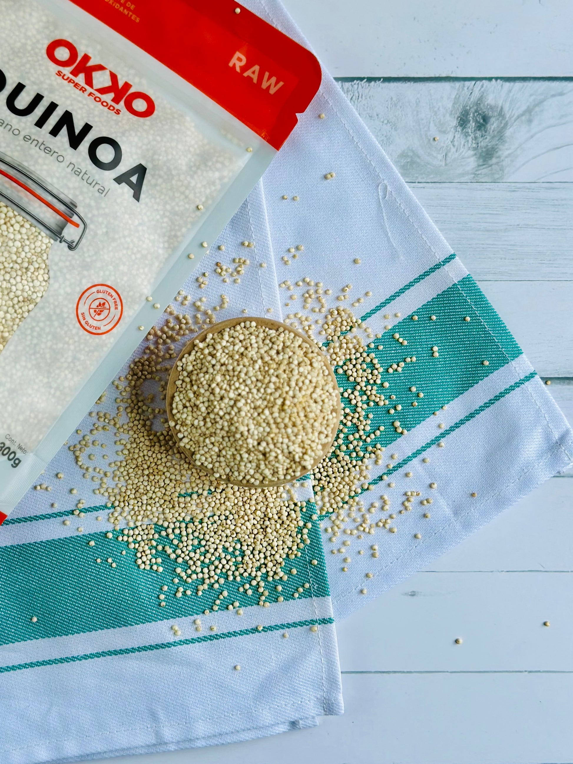 | Descripción: 1 bolsa de semillas de quinoa "Okko" de 300 gramos |