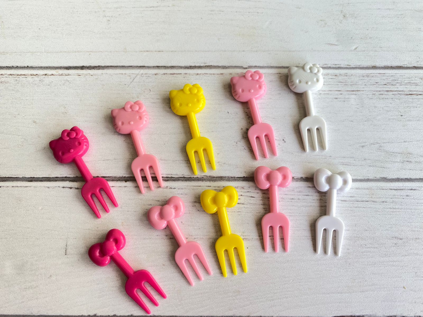 Juego de 10 mini tenedores de Kitty , ideal para que los pequeños coman fruta, verduras o pequeños bocaditos