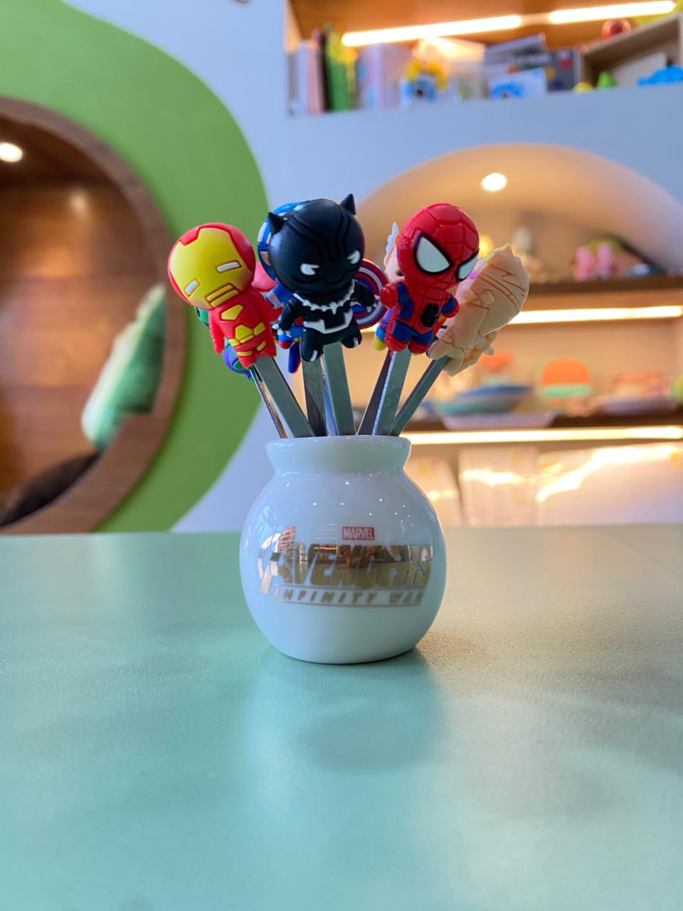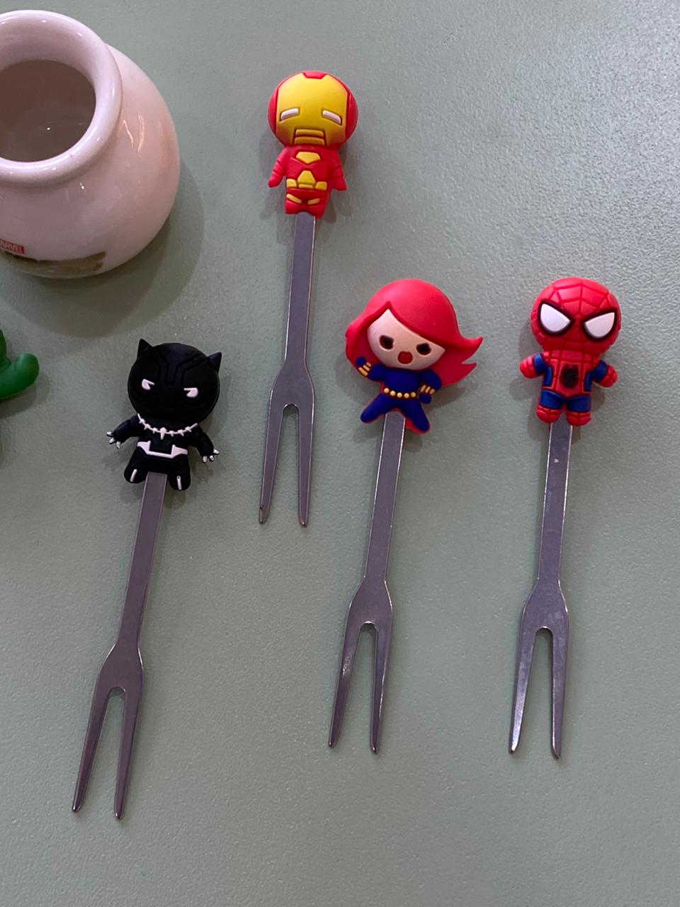 Haz que cada bocado sea una pequeña aventura. Este set de tenedores infantiles está decorado con simpáticos superhéroes inspirados en el universo Avengers, perfectos para motivar a los peques a comer de forma autónoma y divertida.