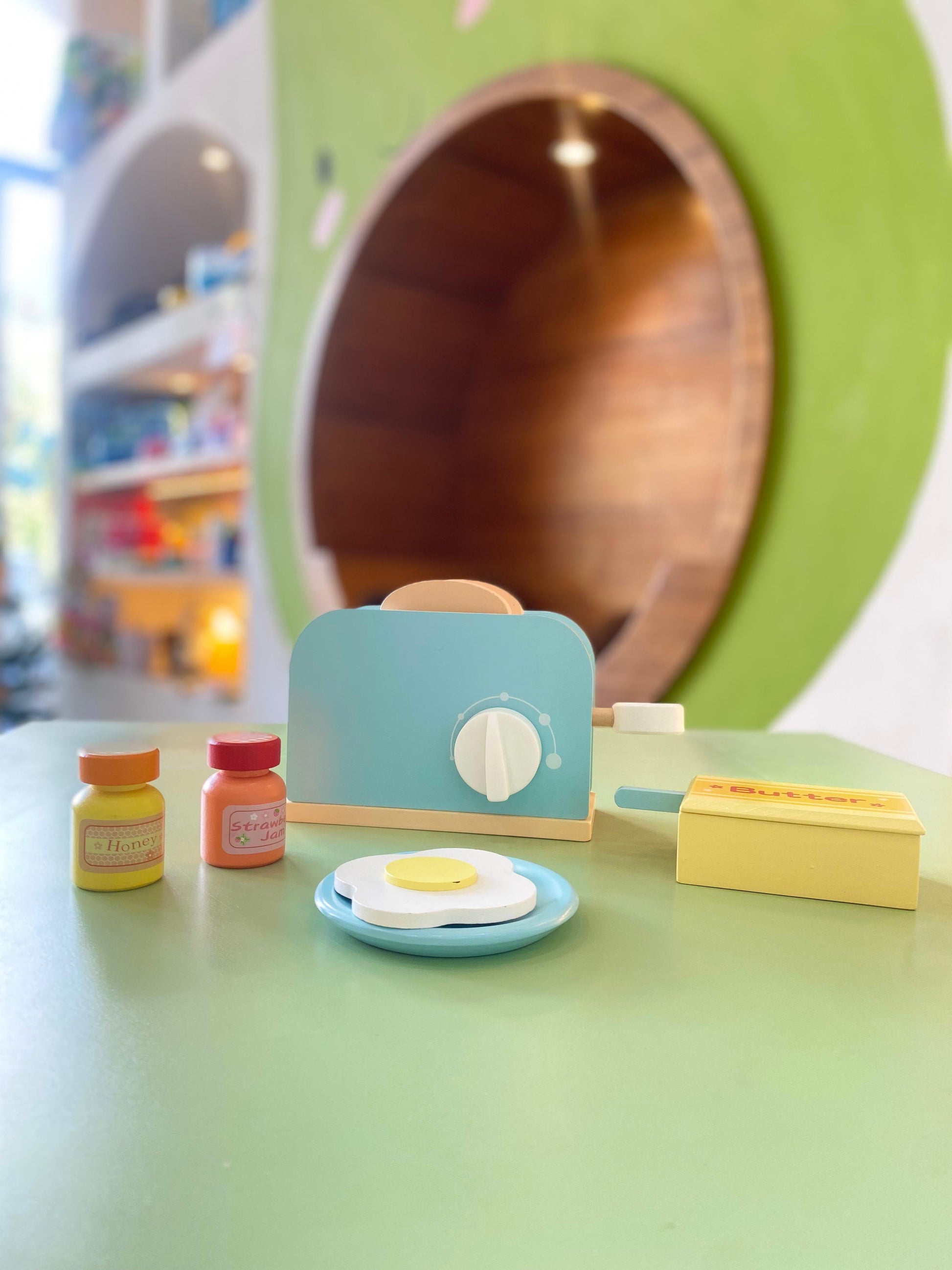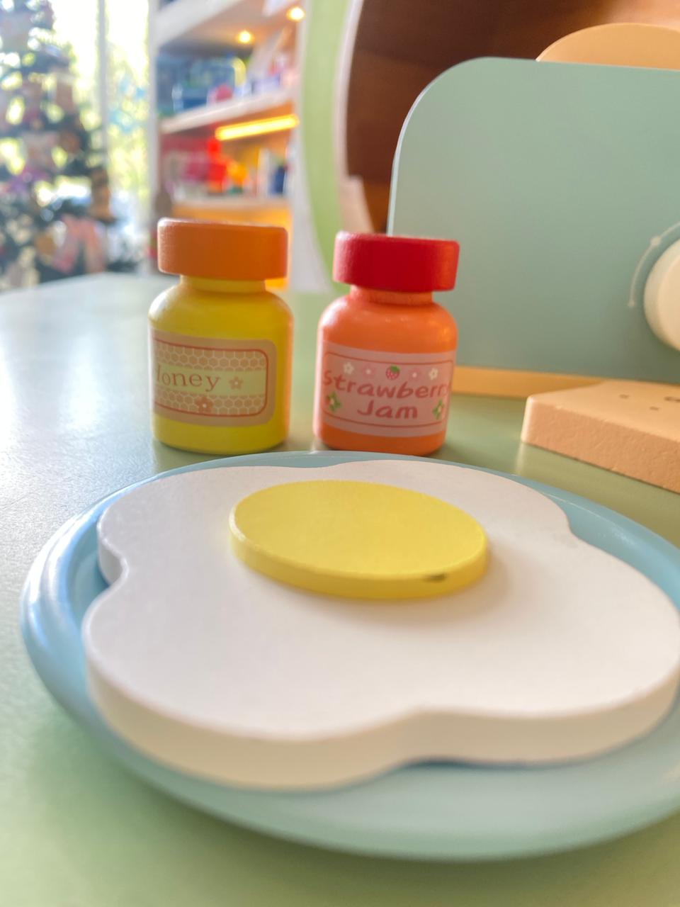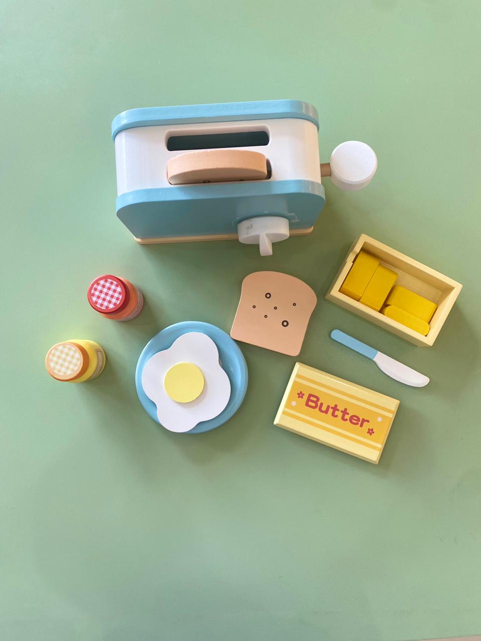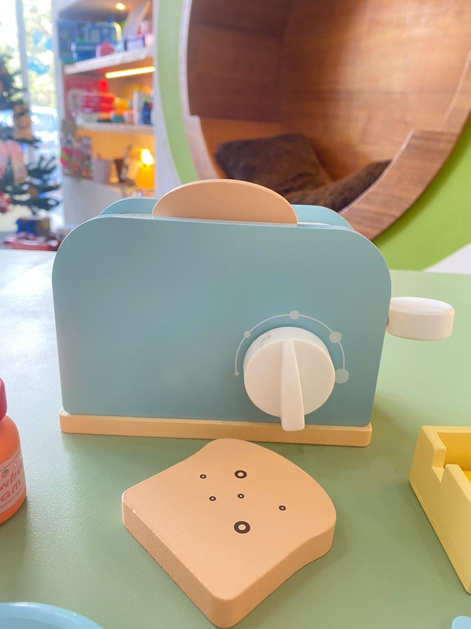 Esta tostadora de juguete hecha de madera es perfecta para jugar a la cocinita. ¡Tostar los alimentos con esta divertida tostadora de madera hará que la hora de juegos sea aún más deliciosa!