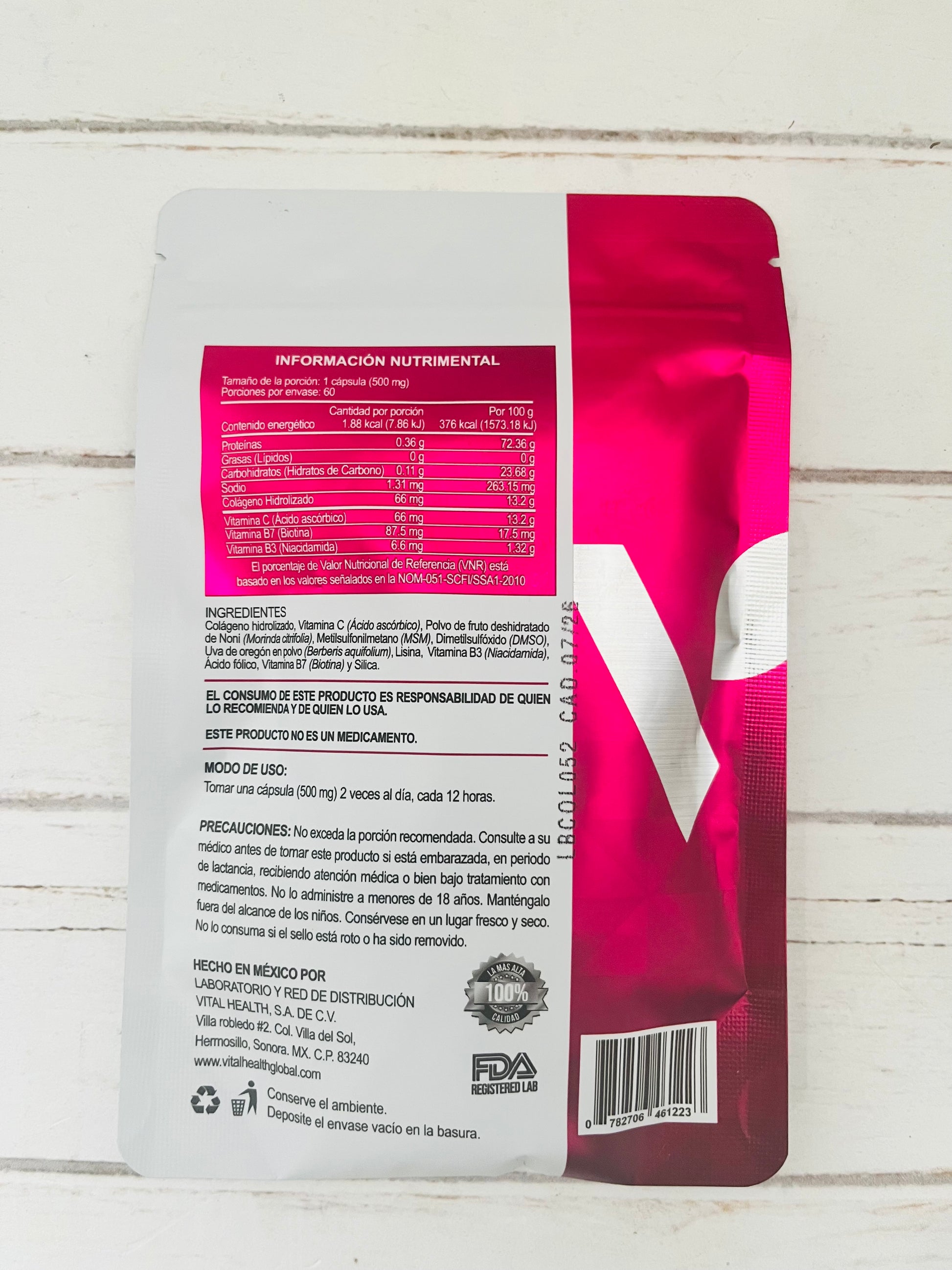 Fórmula única, enriquecida con: MSM, Vitamina C, Vitaminas B3 y B7 y colágeno hidrolizado.