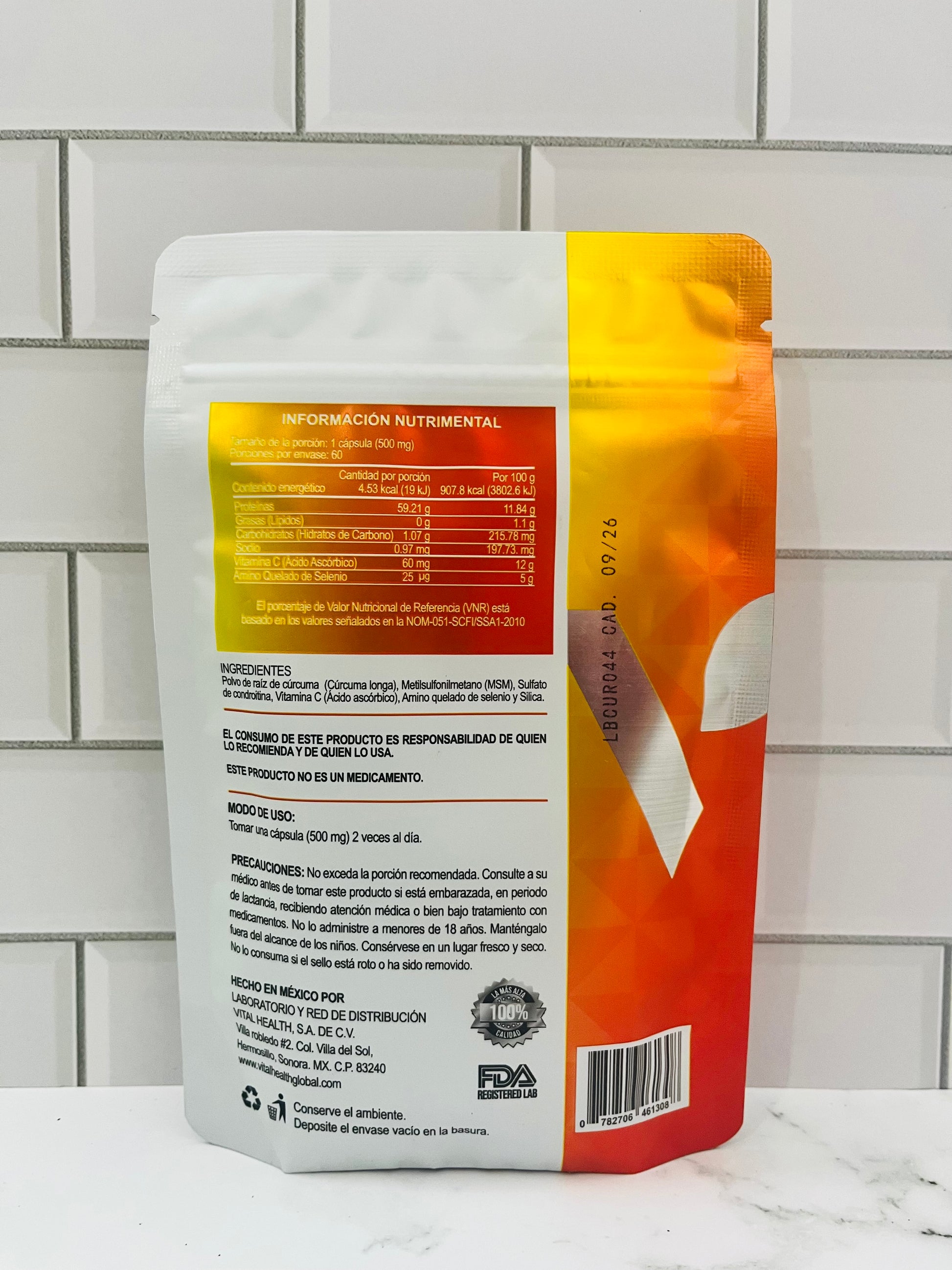 Potenciada por ingredientes naturales de alta calidad como la Cúrcuma, MSM, Condroitina, Vitamina C y Selenio, los cuales podrían ayudarte a aliviar las molestias articulares y fortalecer tu sistema inmunológico.