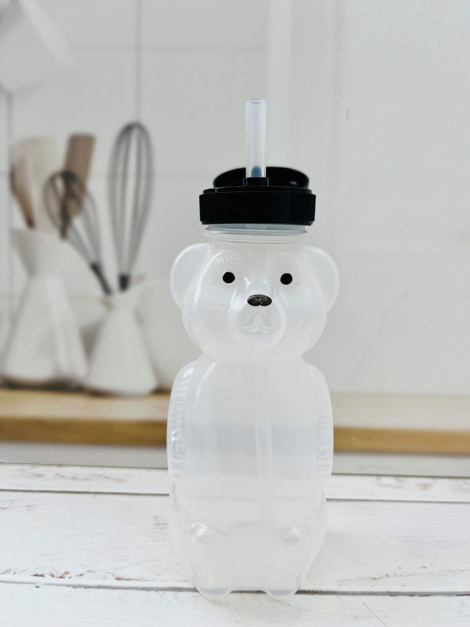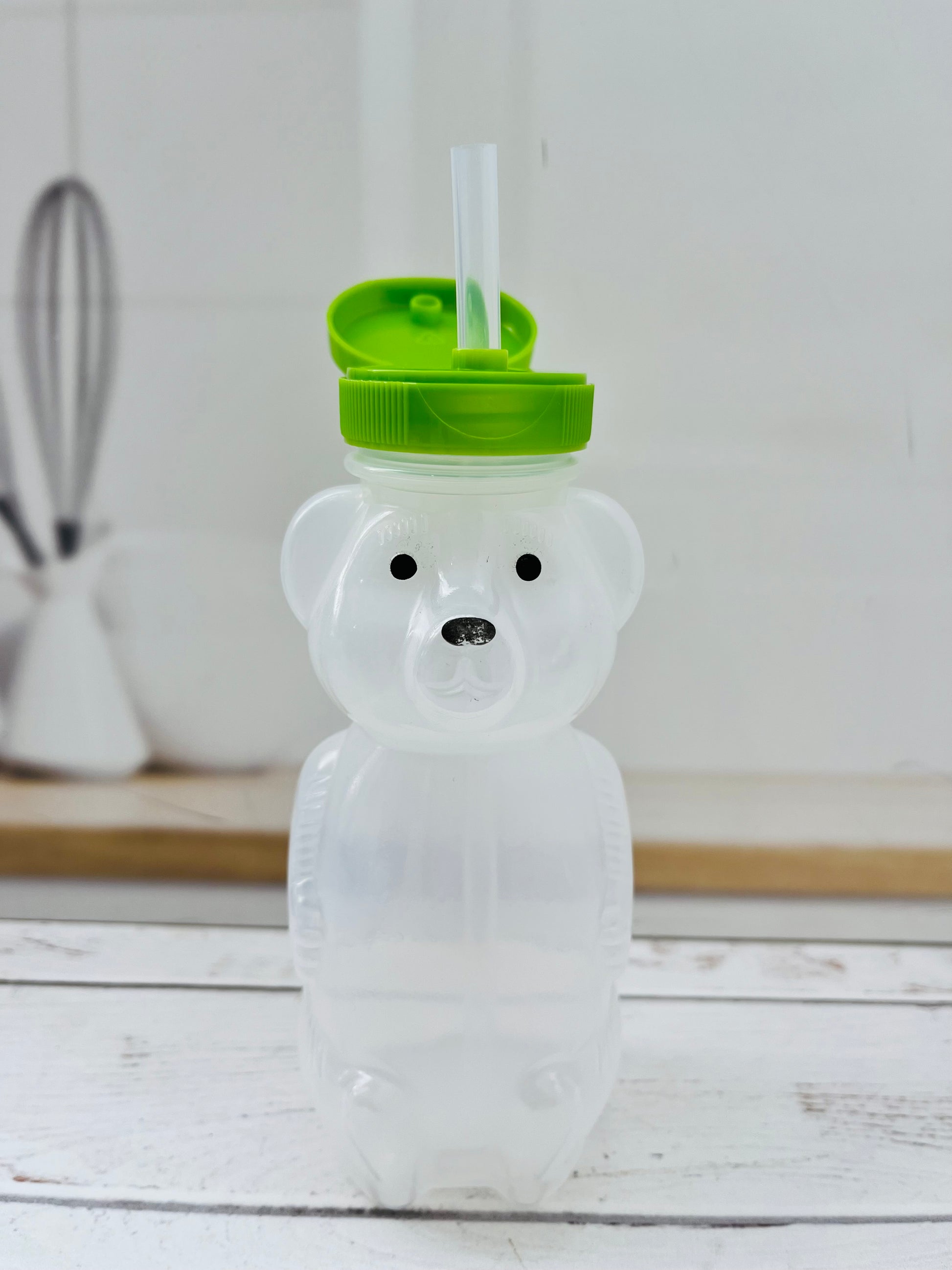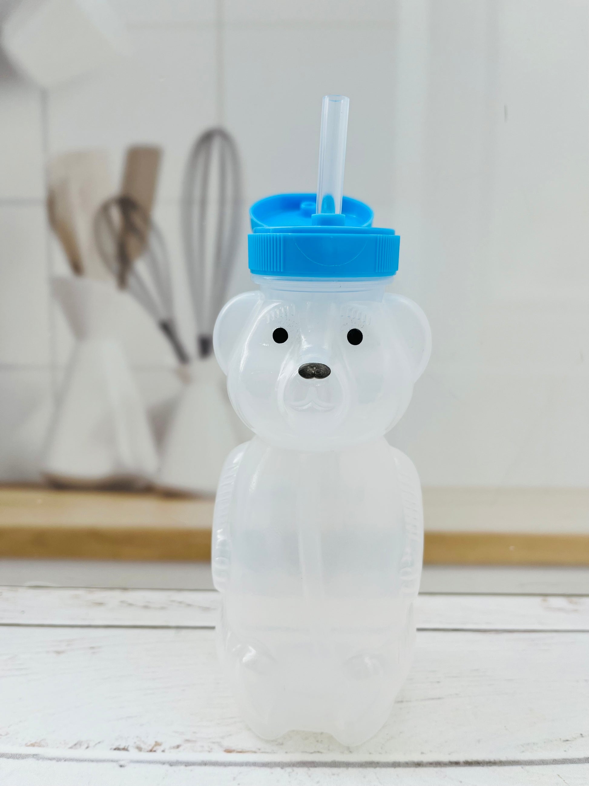 Vasito en forma de oso con tapa y popote, libre de BPA.