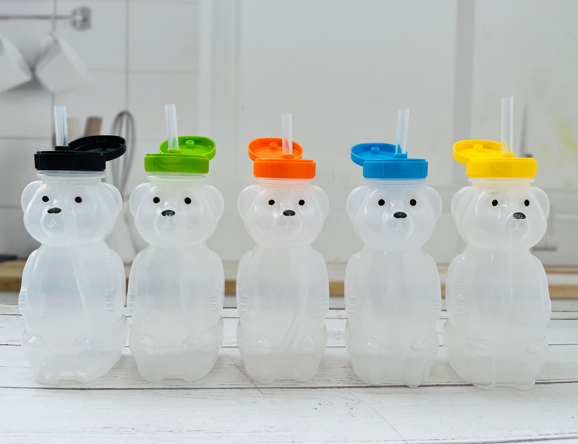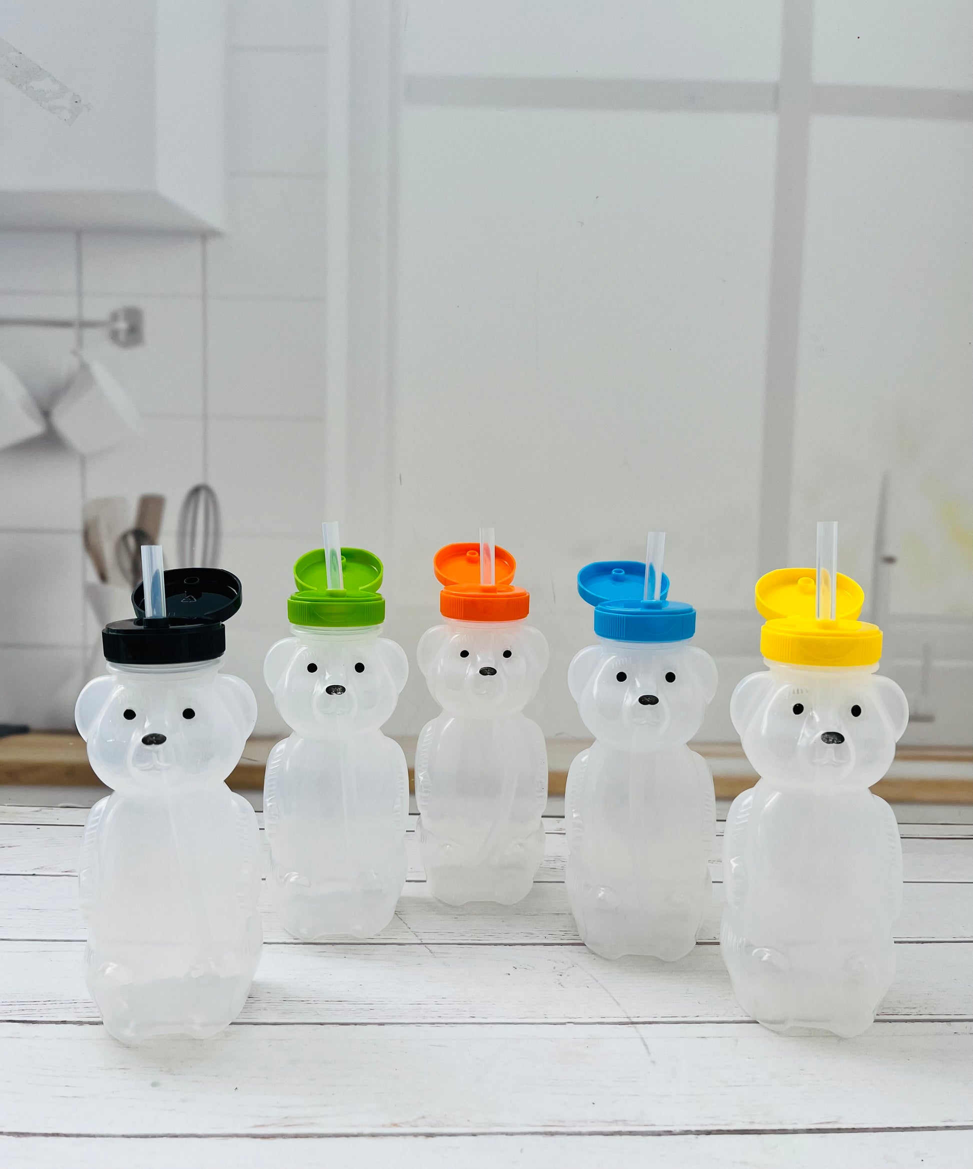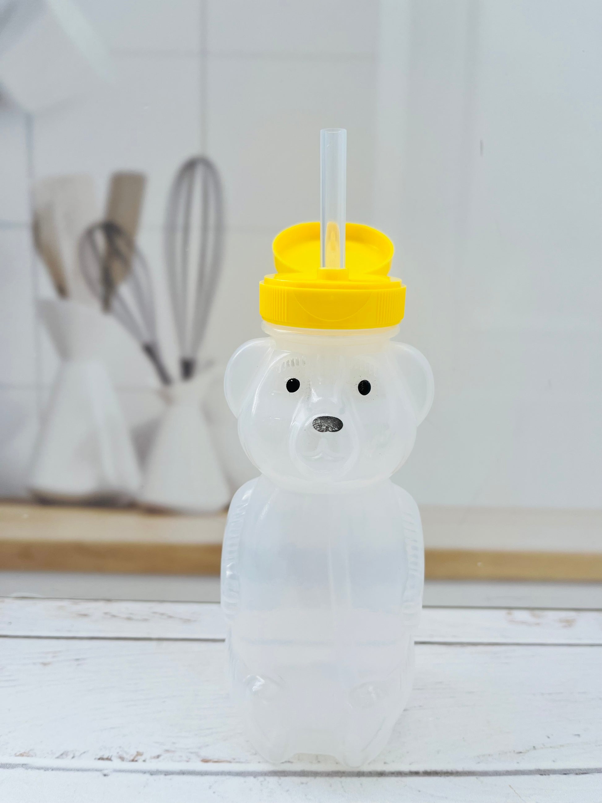 Vasito en forma de oso con tapa y popote, libre de BPA.